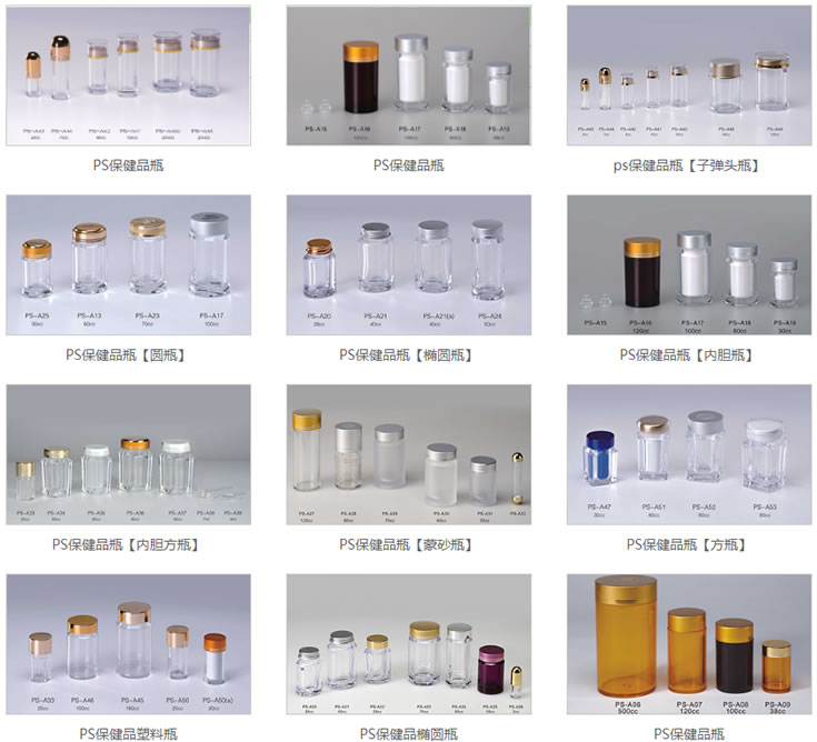 PS瓶透明度極高,表面光澤,容易印刷,廣泛應(yīng)用于食品、藥品和保健品包裝等。