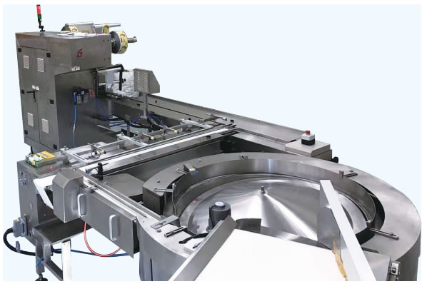 功能與特點(diǎn):蛋卷無托理料包裝線由供料帶、圓盤整理機(jī)、自動(dòng)理料機(jī)組、尾架以及包裝機(jī)組成,利用圓盤整理機(jī)的離心力, 對蛋卷進(jìn)行整理,并有序地送進(jìn)自動(dòng)理料機(jī)組進(jìn)行定位包裝。