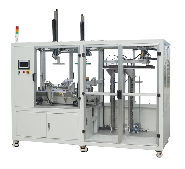 主要適用在:醫(yī)用口罩、食品、醫(yī)用品、玩具、文具、汽車配件、化妝品、五金件、日用品、等小件產品自動裝盒。