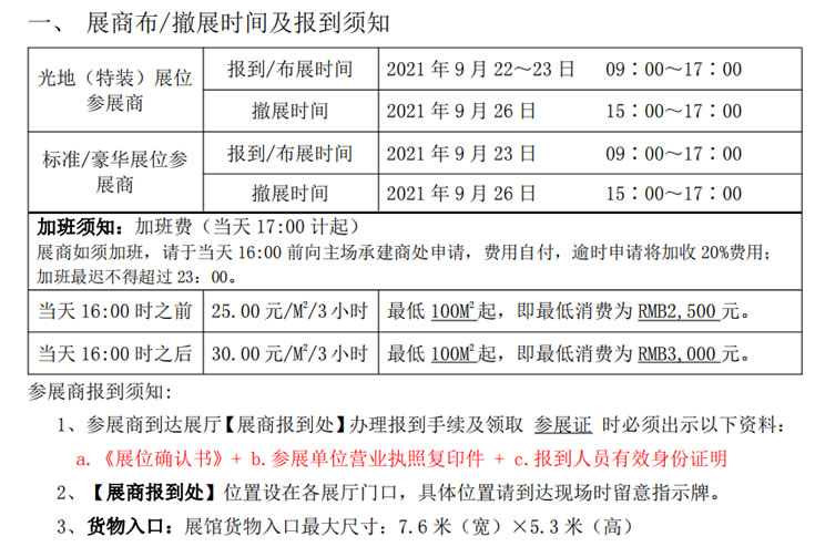 注意事項(xiàng):所有參展商,在進(jìn)場、離場和展覽會舉行期間,必須佩戴本次大會所發(fā)相應(yīng)證件,證件于 2021年09月22-23日在展商報(bào)到處領(lǐng)取。