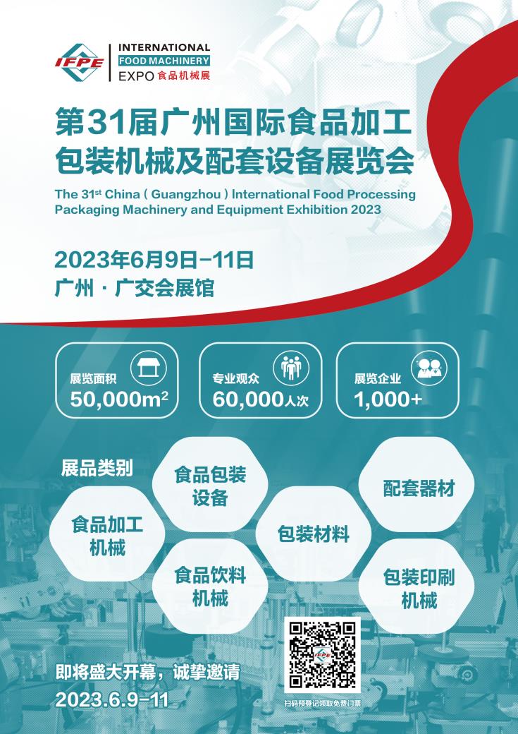 第31屆廣州國際食品加工包裝機械及配套設備展覽會將于6月9日盛大開幕,誠摯邀請您的光臨!