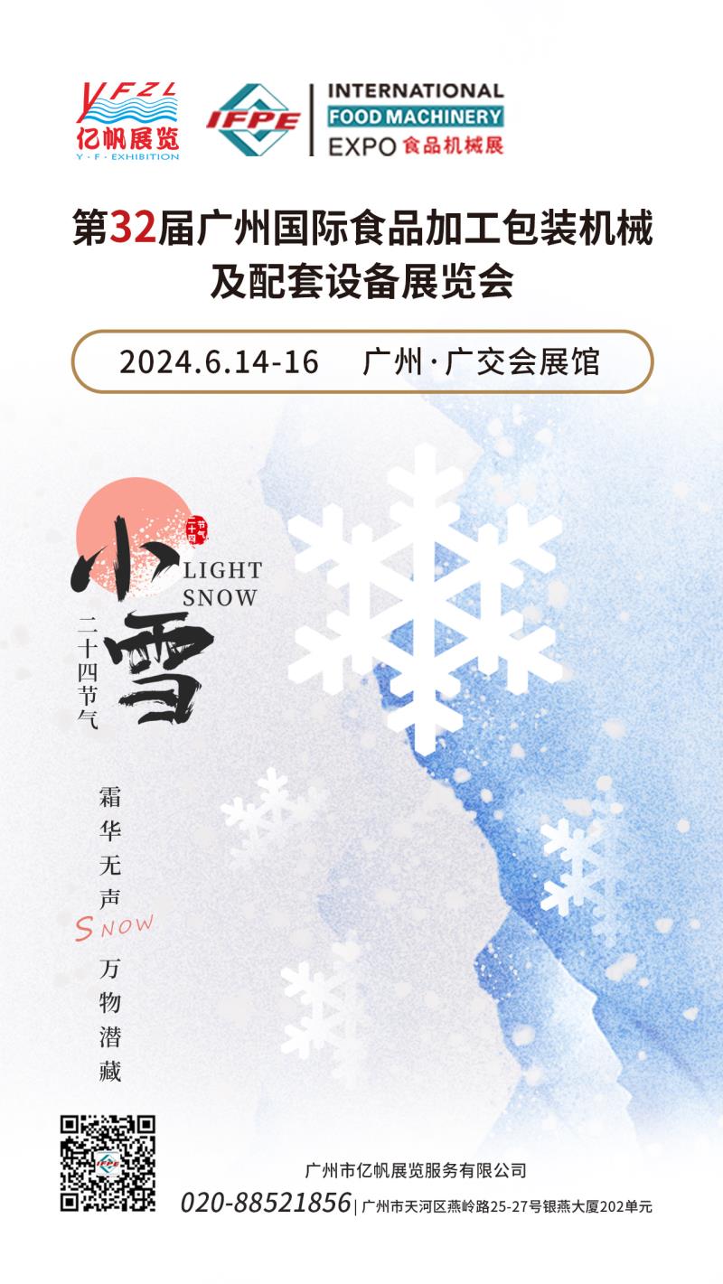 第34屆廣州國際食品加工包裝機械及配套設備展覽會(IFPE)將于2026年6月4-6日在廣州?廣交會展館舉行,IFPE食機展會由廣州市億帆展覽服務有限公司主辦,經(jīng)過多年的積淀與發(fā)展,已成為一個集食品生產(chǎn)、加工、包裝、食品招商全產(chǎn)業(yè)鏈于一體的行業(yè)品牌盛會。IFPE食機展與廣州國際大健康產(chǎn)業(yè)博覽會(IHE China大健康展)同期舉辦,將聯(lián)手為業(yè)內(nèi)人士搭建一個技術(shù)交流、促進合作、擴大上下游貿(mào)易、提高品牌和企業(yè)知名度的高品質(zhì)商貿(mào)平臺。