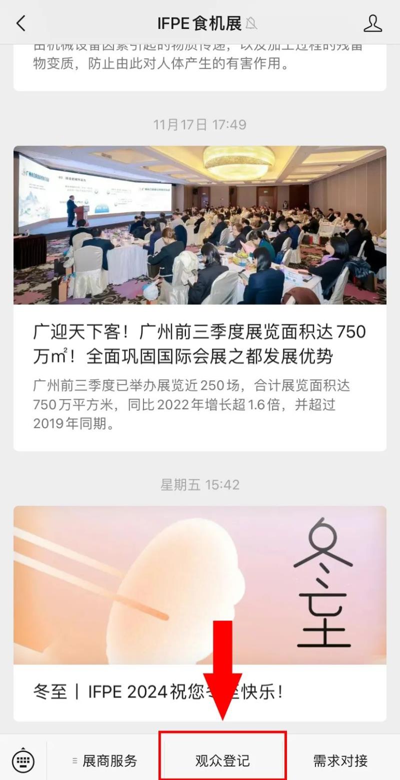 01?關(guān)注官方微信公眾號步驟1:關(guān)注官方公眾號“IFPE食機(jī)展” |