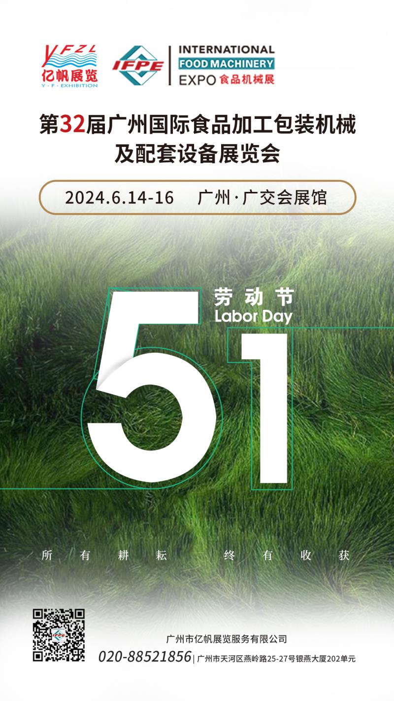 五一將至,預(yù)祝大家節(jié)日快樂丨IFPE食品機械展會