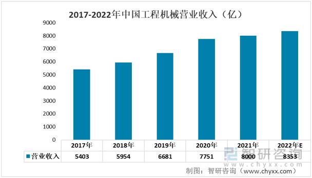 2017-2022年中國工程機械營業(yè)收入(億)
