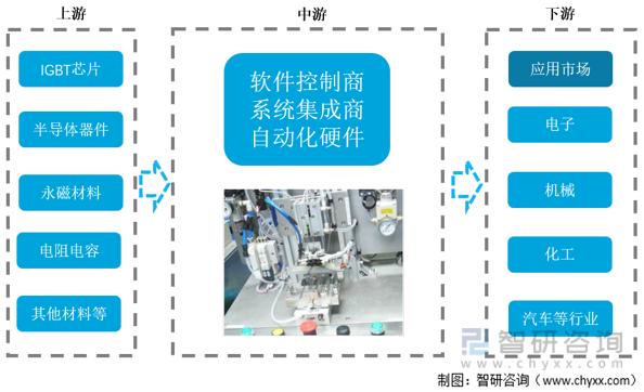 工業(yè)自動化是20世紀(jì)以來現(xiàn)代制造領(lǐng)域中最重要的核心技術(shù)和產(chǎn)業(yè)之一,其涉及電力、電子、計算機、人工智能、通訊、機電等諸多領(lǐng)域,需運用控制理論、儀器儀表、計算機信息技術(shù)等先進技術(shù),屬于綜合學(xué)科產(chǎn)業(yè),具有技術(shù)密集、高投入和高效益等顯著特征,是典型的高附加值產(chǎn)業(yè)。工業(yè)自動化的應(yīng)用可使工廠的生產(chǎn)和制造過程更加自動化、效率化、精確化,并具有可控性及可視性,從而達(dá)到增加產(chǎn)量、提高質(zhì)量、降低消耗、確保安全等目的。工業(yè)自動化就是工業(yè)生產(chǎn)中的各種參數(shù)為控制目的,實現(xiàn)各種過程控制,在整個工業(yè)生產(chǎn)中,盡量減少人力的操作,而使工業(yè)能進行自動生產(chǎn)。自動控制系統(tǒng)是實現(xiàn)自動化的主要手段,主要由控制器、被控對象、執(zhí)行機構(gòu)和變送器四個環(huán)節(jié)組成。工業(yè)自動化行業(yè)的原材料主要有電子元器件、機械件、非標(biāo)加工件及其他產(chǎn)品。工業(yè)自動化行業(yè)產(chǎn)業(yè)鏈上游主要是自動化軟件、硬件制造商,主要包括可編程邏輯控制器(PLC)、伺服系統(tǒng)、步進系統(tǒng)、變頻器、人機界面(HMI)、傳感器、數(shù)據(jù)采集與監(jiān)視控制系統(tǒng)(SCADA)、制造執(zhí)行管理系統(tǒng)(MES)等工業(yè)自動化產(chǎn)品制造商;中游則是系統(tǒng)集成商和產(chǎn)品分銷商,即根據(jù)下游客戶的工藝需求,提供設(shè)備選型、產(chǎn)品銷售以及將標(biāo)準(zhǔn)化產(chǎn)品集成為可用的自動化控制系統(tǒng)等服務(wù)的提供商;下游則是制造裝備制造商和自動化工廠投資方,包括機床、電子制造設(shè)備、機械等領(lǐng)域。