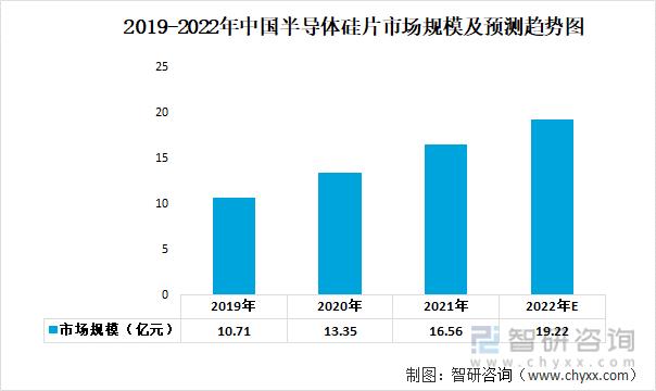 2019-2022年中國半導(dǎo)體硅片市場規(guī)模及預(yù)測趨勢圖