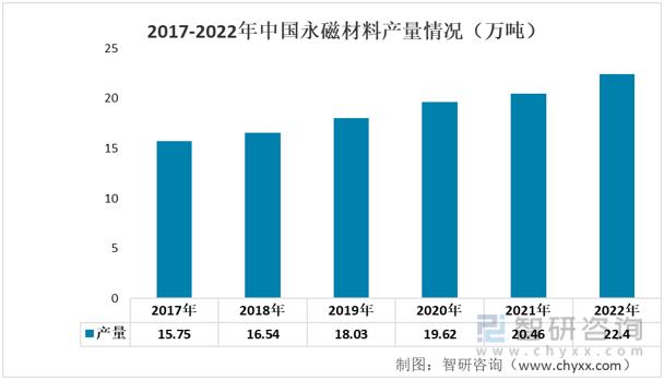 2017-2022年中國永磁材料產(chǎn)量情況(萬噸)