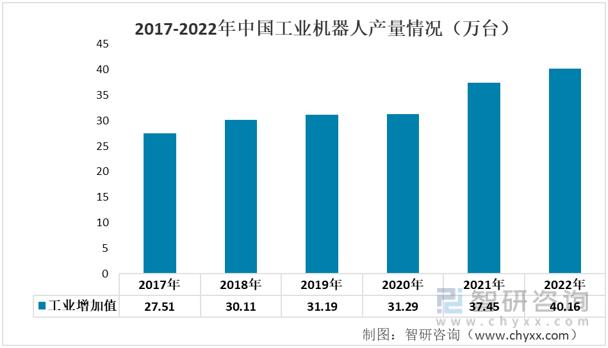 2017-2022年中國工業(yè)機器人產(chǎn)量情況(萬臺)
